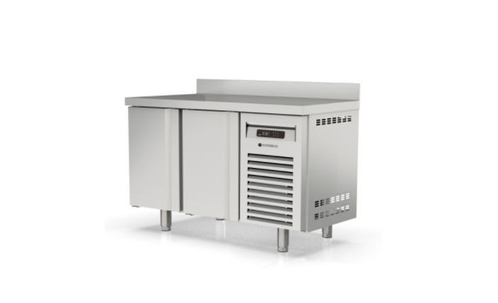 - Encimera de acero inox AISI-304 con frente curvo y peto trasero sanitario