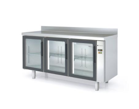 magnético (permanece abierta al superar los 90° de apertura) - Encimera de acero inox AISI-304 con frente recto y peto trasero sanitario de