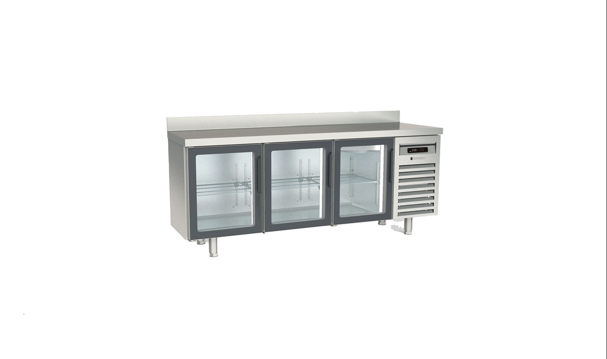 - Encimera de acero inox AISI-304 con frente recto y peto trasero sanitario de 100 mm (opcional sin peto)