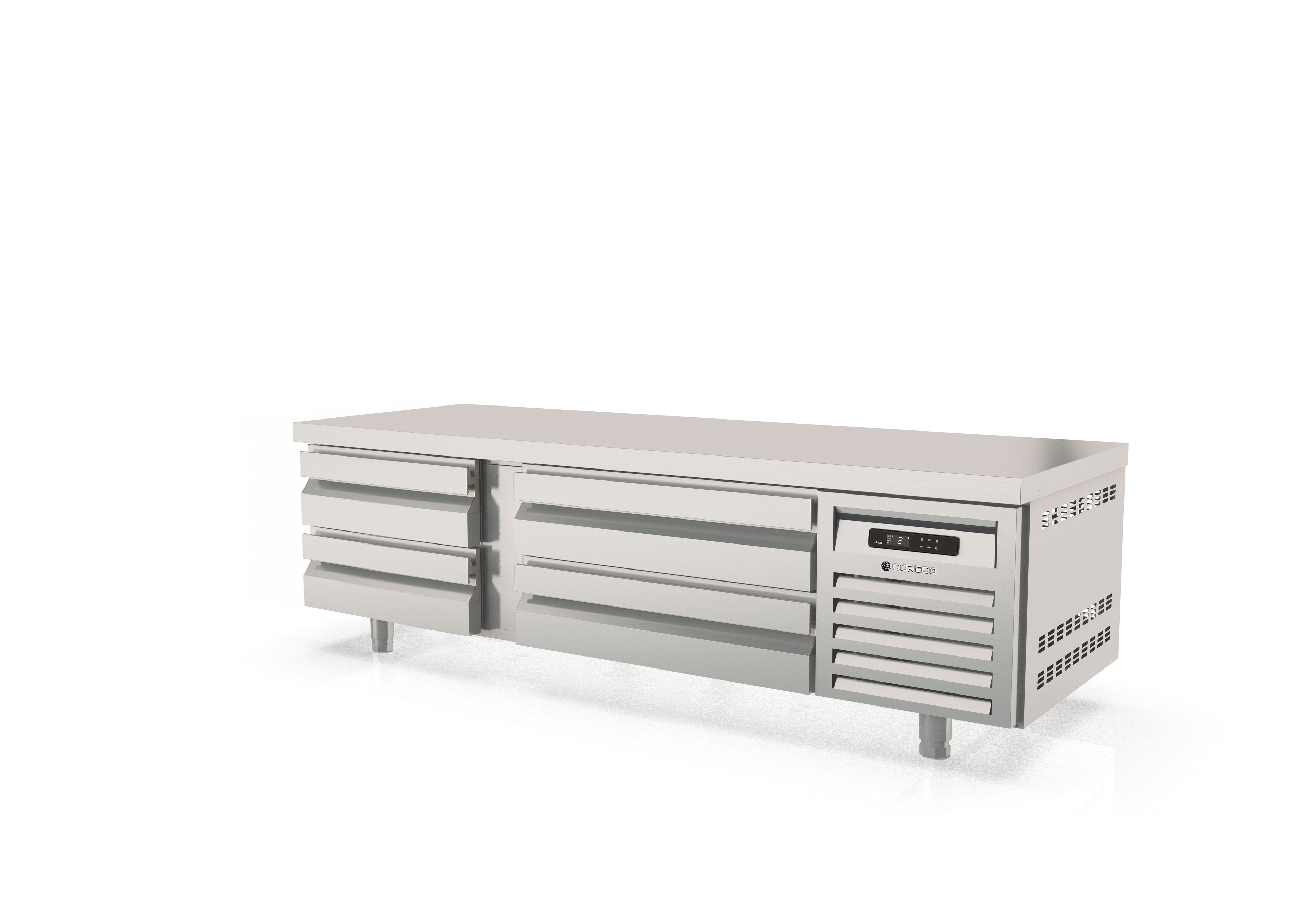 - Cajoneras refrigeradas inox desmontables sobre guías inox telescópicas,