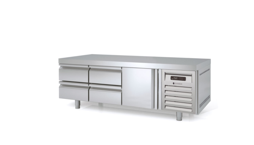 - Cajoneras refrigeradas inox desmontables sobre guías inox telescópicas, sistema