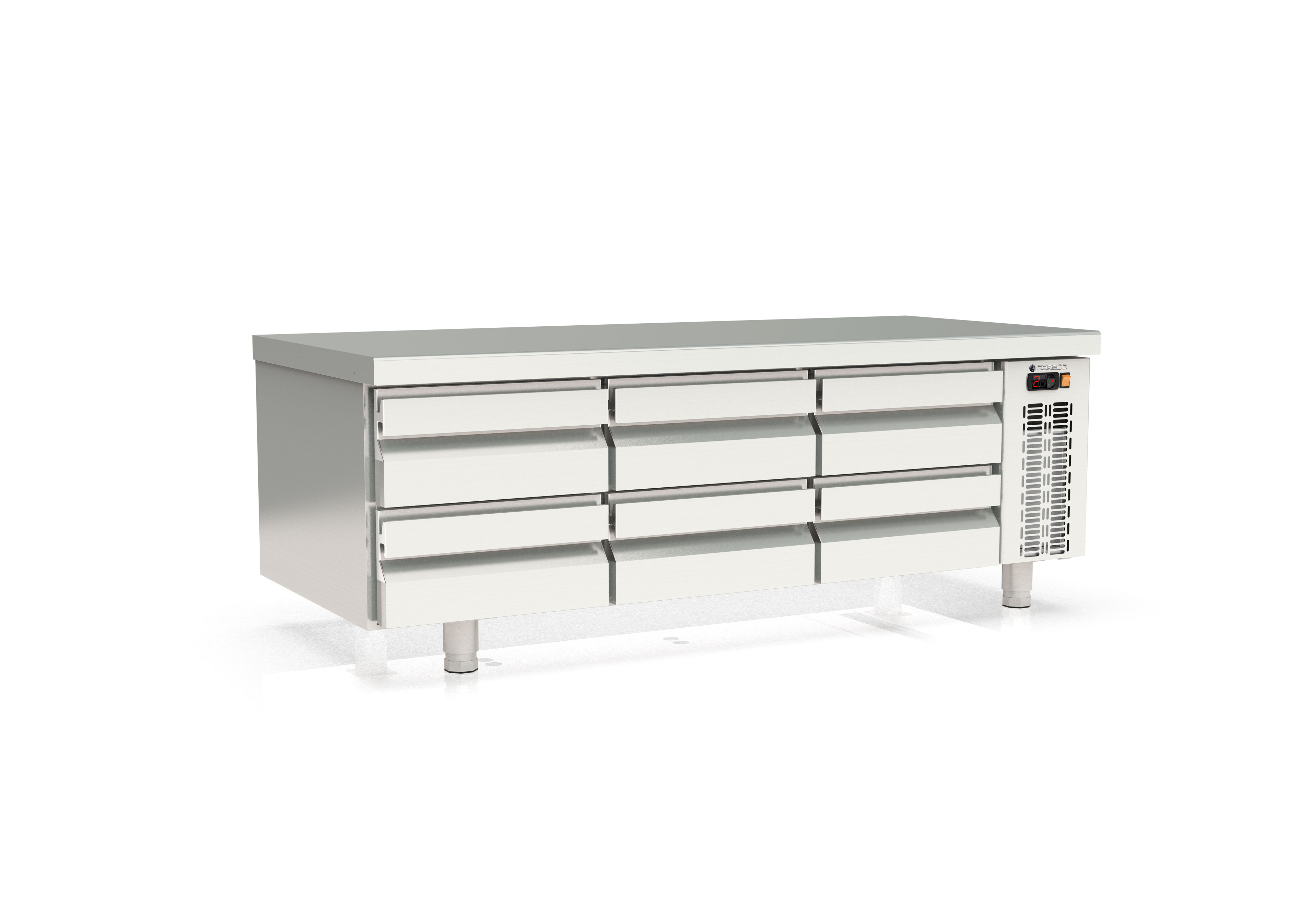 - MFB-CC: Cajoneras refrigeradas inox desmontables sobre guías inox telescópicas, sistema auto-cierre de serie