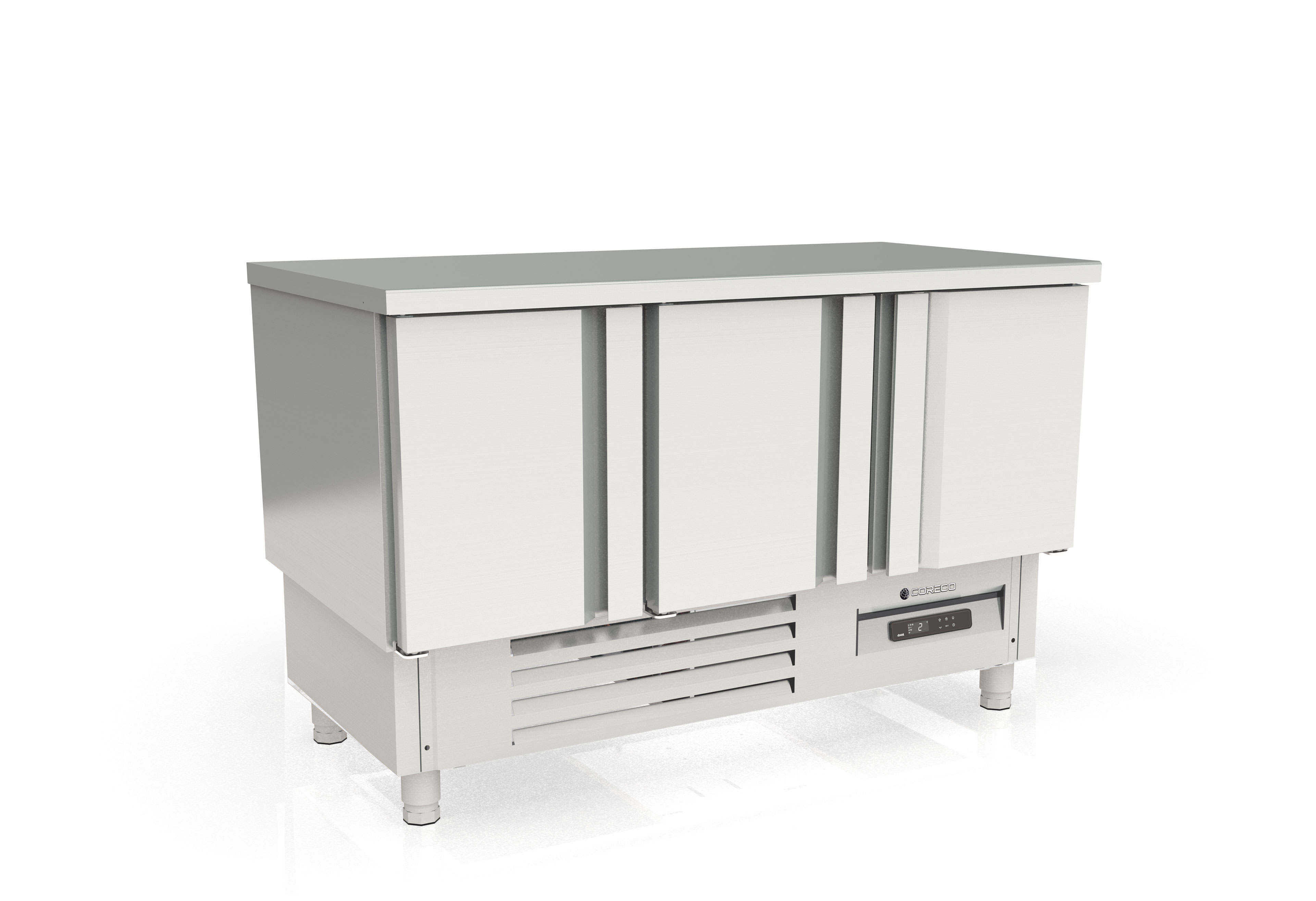 - Encimera de acero inox AISI-304 con frente recto (opcional con peto sanitario 100