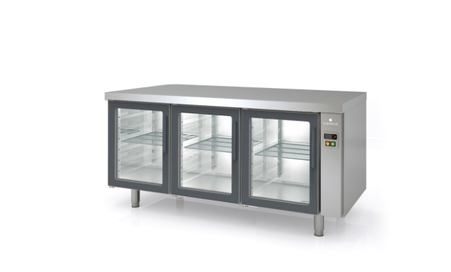 - Encimera de acero inox AISI-304 con frente recto (Opcional con peto sanitario 100