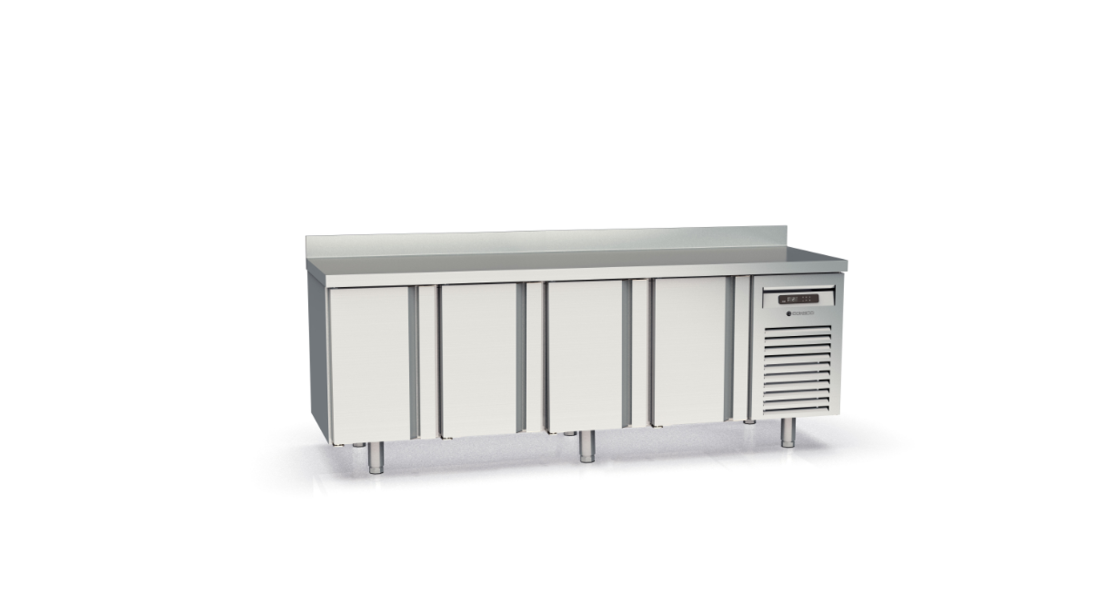 - Plan de travail en acier inoxydable AISI-304 avec façade droite et dosseret sanitaire de