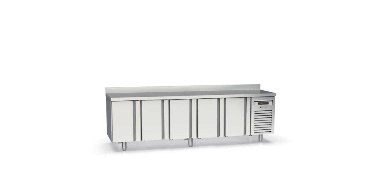 - Plan de travail en acier inoxydable AISI-304 avec façade droite et dosseret sanitaire de